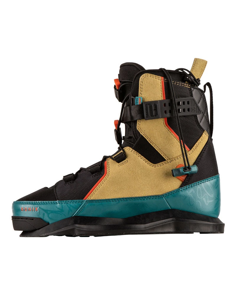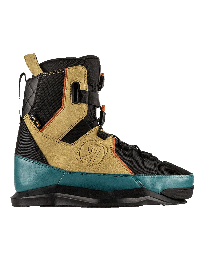 The Ronix Atmos is the perfect model if you’re looking for a walkable style cable wakeboard boot but also chasing something with some extra mobility to lean right into your tricks. Starting on a mainframe plate, the Atmos is specifically designed to cater to that removable liner without losing any board feel. Inside is an Intuition Liner, one of the most customisable heat moldable liners in the industry to completely customise the boot to your foot for maximum riding comfort. Added to this liner is the Walkable EXP S.O.L.E, giving you a performance boot that you can slide the inner out of and walk around at will, saving your feet from a beating cruising around the cable park. Finally, to make sure you don’t crush your boots in your travels, Para-skin natural rubber in the heel and ‘highback’ area of the boot allows the walkable liner to slip in and out without putting any undue pressure on the binding.