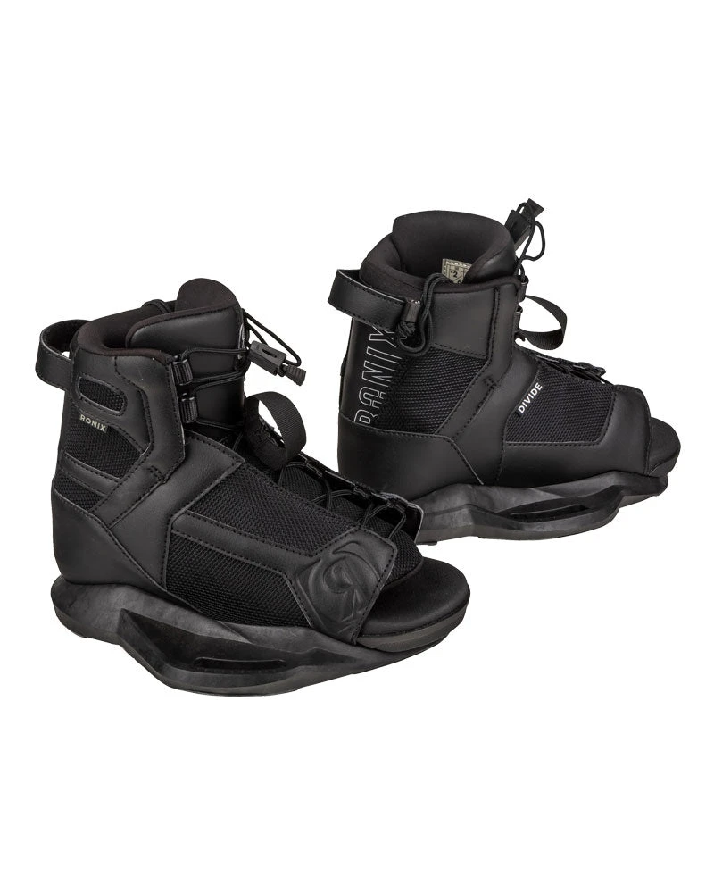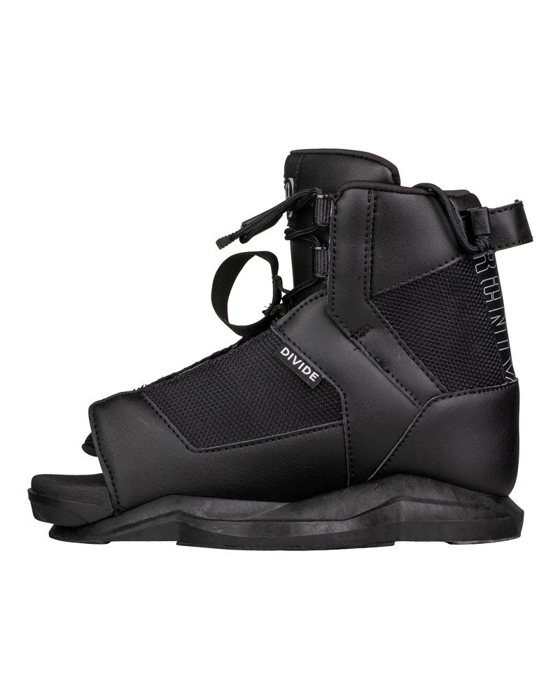 The Ronix Divide boot is Ronix’s entry-level open-toe design from Ronix, accommodating for multiple foot sizes without breaking the bank. Coming with a stage 1 liner and a universal tongue, it is designed upon the idea of remaining lightweight and comfortable while accommodating multiple foot sizes. Combined with built-in j-bars and an articulated cuff will allow the Divide boot to flex freely while providing plenty of heel lock to provide an extra response.