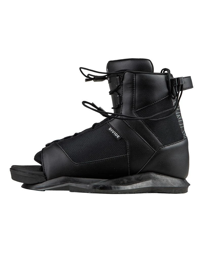 The Ronix Divide boot is Ronix’s entry-level open-toe design from Ronix, accommodating for multiple foot sizes without breaking the bank. Coming with a stage 1 liner and a universal tongue, it is designed upon the idea of remaining lightweight and comfortable while accommodating multiple foot sizes. Combined with built-in j-bars and an articulated cuff will allow the Divide boot to flex freely while providing plenty of heel lock to provide an extra response.