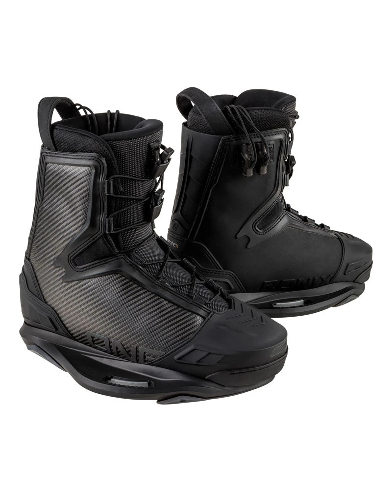 The Ronix One Carbitex takes the boot that you thought couldn’t fit any more in it and does exactly that! From the Brainframe chassis inwards, this cloud of a boot maximises support and feel to be one with your wakeboard and fills every gap for a tight fit with its double lasted shape. An all-new Carbitex carbon wrap adds that bit of carbon in your sporting life that you’ve been missing, reducing stretch and improving performance. The interior of this boot is designed and shaped like you’ve had a foot massage and are walking home on marshmallows. With the super fabric lining and Pro S.O.L.E, you will have not just comfort but a performance boot that will boost you higher, land softer, and react faster.