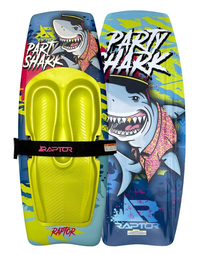 The Raptor Party Shark brings the fun wherever it goes, shaped to make riding easy and enjoyable; it’s always party time. Its 2-stage rocker providing plenty of pop off the top of the wake, while the wider profile of the Party Shark gives a more stable ride with softer landings. These features also come with molded-in fins and base channels for easy transitions from edge to edge while still providing maximum edge hold all the way through to the top of the wake. Combine these features with a tri-density ergonomic seat pad for plenty of comfort under your knees, plus add a single locking strap for plenty of support.